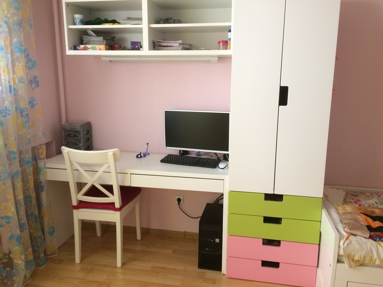 Да,Икея. В детской комнате с двух сторон высокие пеналы-шкафы,там много всего помещается...и игрушки..и вещи...и книги...
