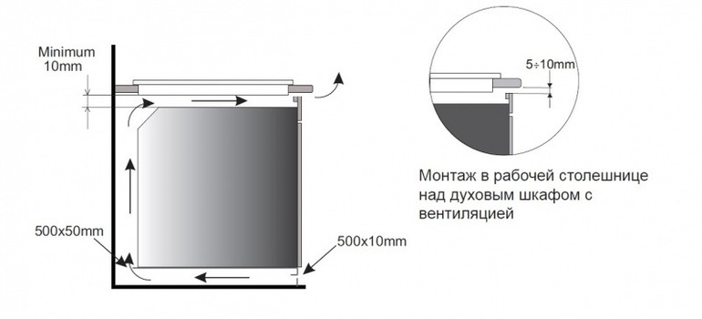 Какая прослойка? Вентиляция в духовке находиться в других местах. Такой щели быть не должно. Верх духового шкафа должен совпадать с верхом фасада.