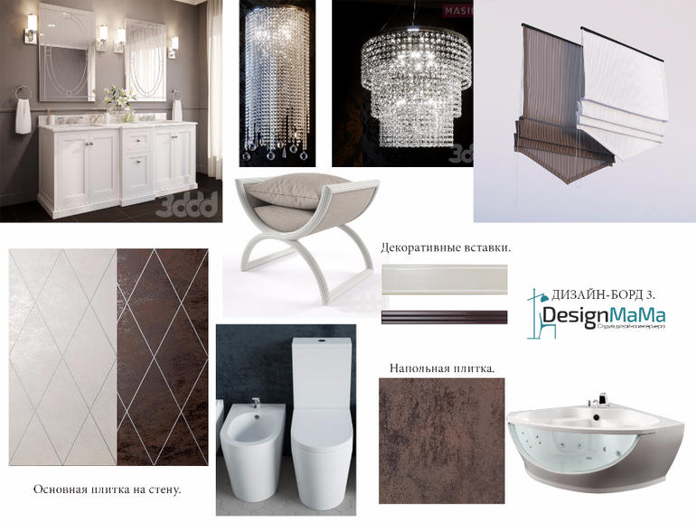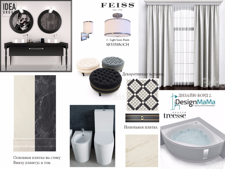 Авторские проекты дизайнеров.(Посты не по теме будут удаляться!)Работаю сейчас над двумя ванными комнатами в частном доме, заказчик одну ванную хочет сделать в стиле современной классики, а вторую в стиле минимализм. Концептуальное решение сделала в виде дизайн-борда (коллажей). Как вам варианты? Может кого-то это вдохновит и наведет на мысль оформить собственную ванную в таких стилях и цветовых оттенках. Если заинтересует название и модель плитки, скину ссылки.