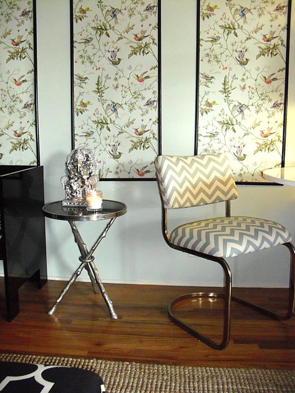 Может быть, у меня самой птички с голубым однотоном, но у меня мебели по стене с птичками нет.