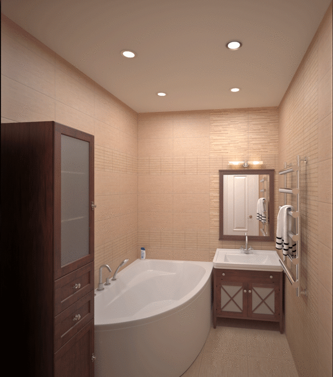 А вы хотите именно такую угловую ванну или это дизайнер предложил? Я бы поставила прямоугольную ванну и совсем по-другому пространство организовала.