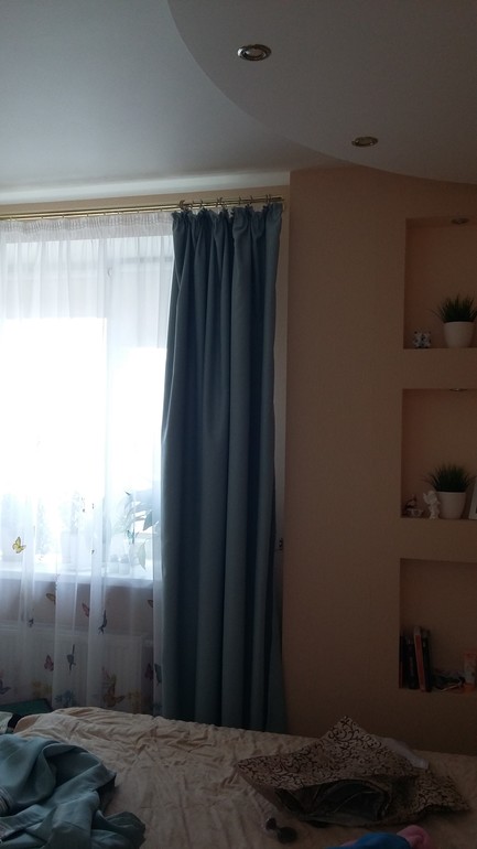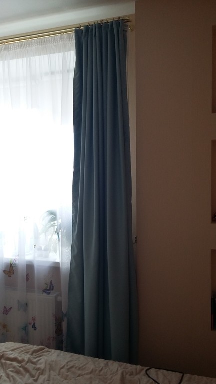 Я бы добавила крючков. Но меня вообще не парит особо этот момент (кто будет смотреть наверх?я юез штор живу год - не могу выбрать подходящие))))) меняйте если только вас это сильно цепляет/раздражает