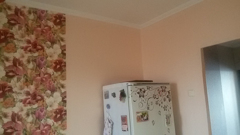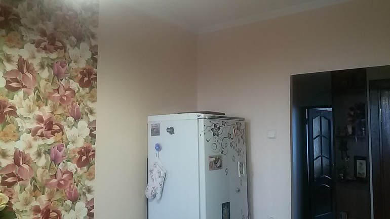 Интерьерное решение кухниДевочки. Может я придираюсь. Но вот давит на меня пустой угол над холодильником в кухне. Какая-то незавершенность. В углу около балкона будет висеть телевизор. А тут....конечно, огромный холодильник спас бы ситуацию. Но пока 1,80 (и не скоро будет другой). А может телек над холодильником? Но высоко тогда будет.....
