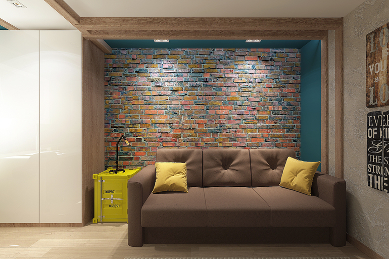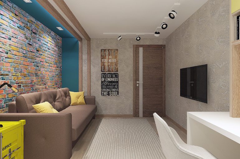 Авторские проекты дизайнеров.(Посты не по теме будут удаляться!)Посчастливилось мне сделать проект для двух мальчуганов 13 и 7 лет) Мебель за исключением стеллажей и рабочего стола осталась, тк прекрасно вписалась в наш интерьер. Диван является трасформером с двумя спальными местами верхним и нижним. Кирпичная стена так же является частью интерьера, но выполнена из белого гипсового камня. Мы решили превратить ее в арт объект, что позволило создать атмосферу лофта в комнате) И конечно же мои любимые балки на потолке дополнили картину.