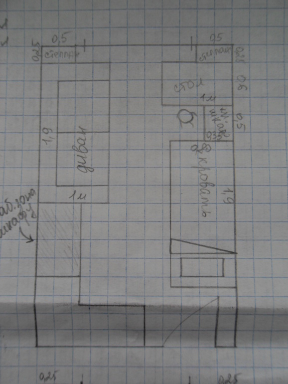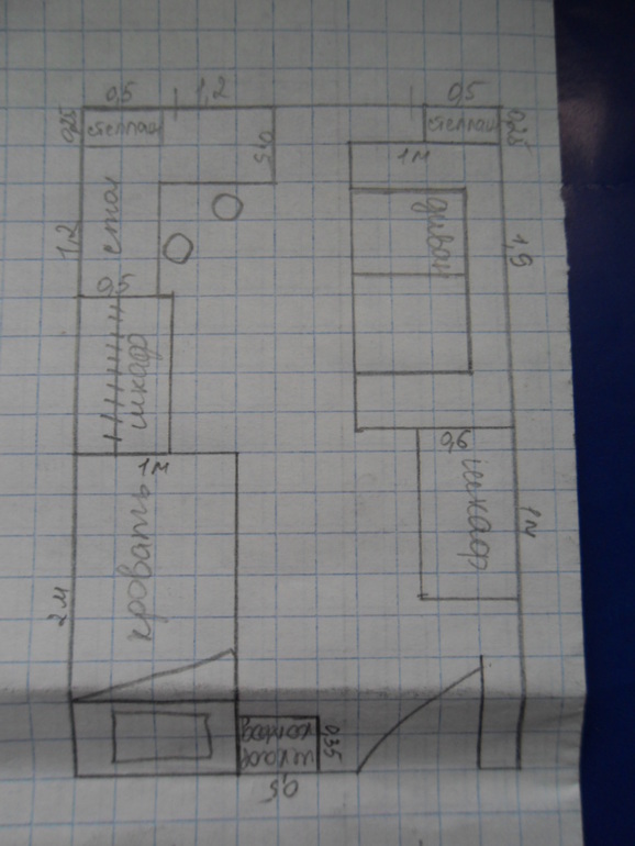 Комната 4.20*2.80 нужно расположить гардероб(вместительный, на перспективу), два спальных места и два рабочих места(дочь идёт в школу, я рукодельничаю)