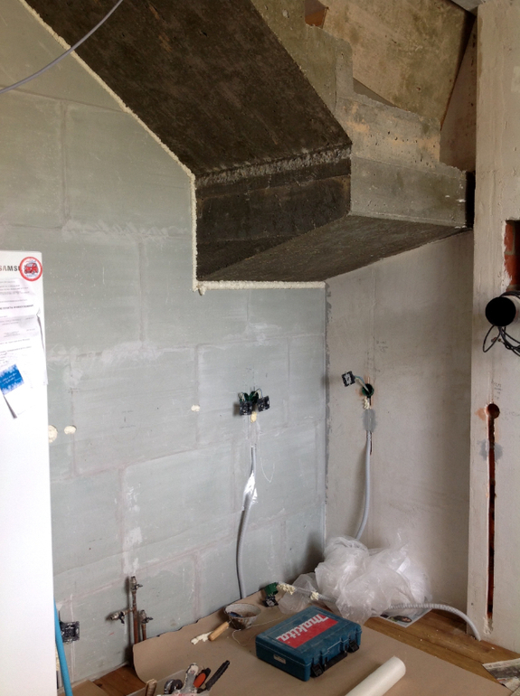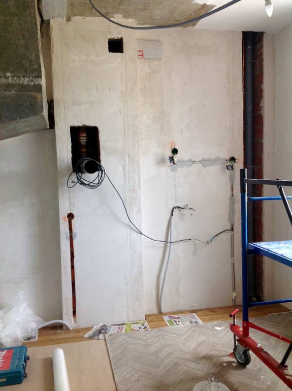 Когда будем заказывать, то сначала основную угловую мебель сделаем, а уже потом по возможности обыграю эту стену с котлом.