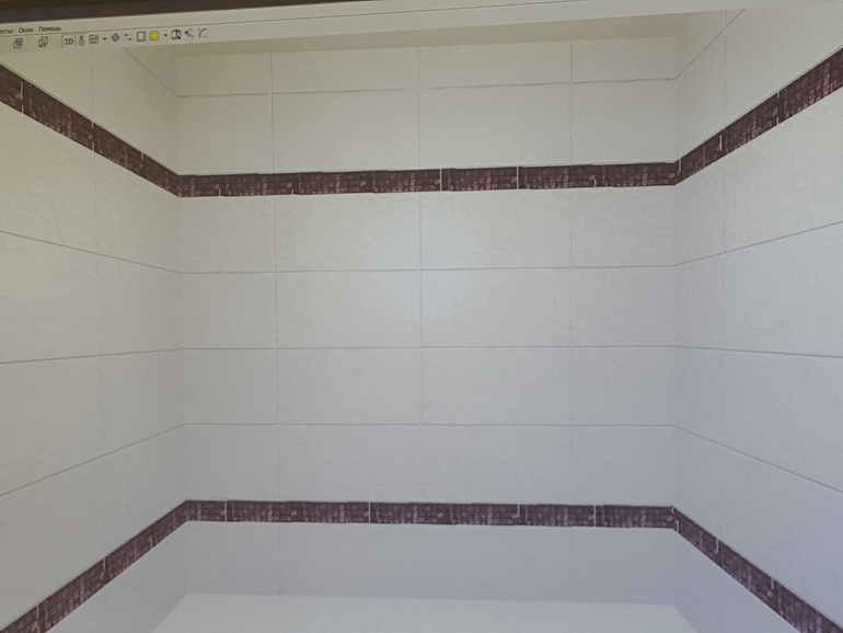 Интерьерное решение ванной комнатыЕсли кто-нибудь помнит мой пост про сиреневую плитку, то расскажу к чему пришли. Остановились на плтике, которая понравилась мне - белая Парадиж Эстен, но в качестве сиреневого акцента выбрали две полосы мозаики по 3 кубика.