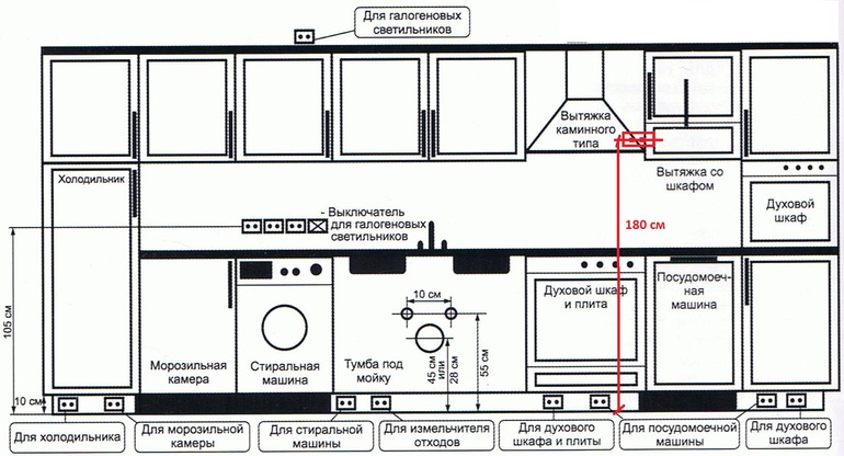 Я имею ввиду розетки под варочную, духовку, ПММ и т.п., которые ставятся практически около пола, посередине высоты цоколя кухни.