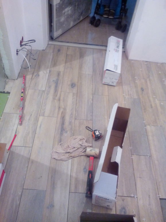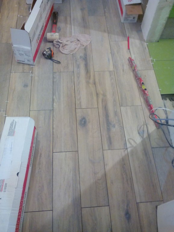 Начали класть плитку, вспомнила про Ваш пост) К сожалению, фото на телефон с камерой очень посредственного качества, но других нет... На полу мне он показался не таким уж фактурным. На вид очень понравился, муж вообще в восторге)