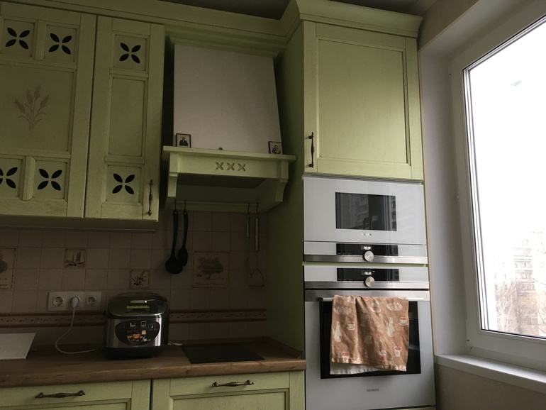 Где она только не стояла )) ну дольше всего на холодильнике (он у нас традиционно невысокий). Потом для нужд ребенка переместилась как раз вот в этот дурацкий промежуток рядом с коробом. Угол сейчас вообще убрала, надоел. Свч на столешке рядом с варкой. Правда, надо понимать, что у меня это самый используемый прибор. Колонну изначально не хотела, но место под нее "зарезервировала" - если приспичит, можно будет безболезненно добавить, поменяв шкафы.