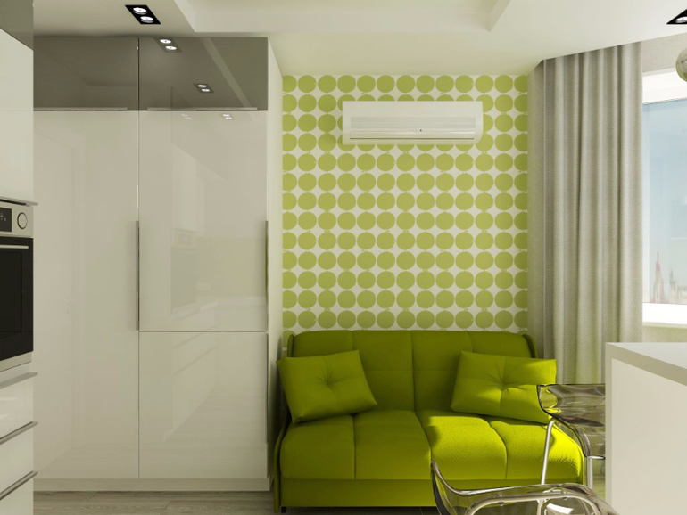 Вариантов расстановки было очень-очень много. Необходимо было совместить все требования-разместить диван раскладной, поставить барную стойку, оставить место для раскладного стола и чтобы оставалось пространство для гостей 8-9 человек.
