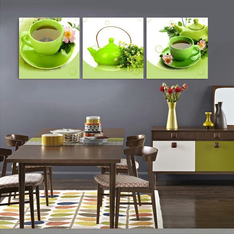но вот так интереснее.Салфетки под горячее в тон,плотный лён на окна и спинки стульев.Пару мелочей зелёного цвета.