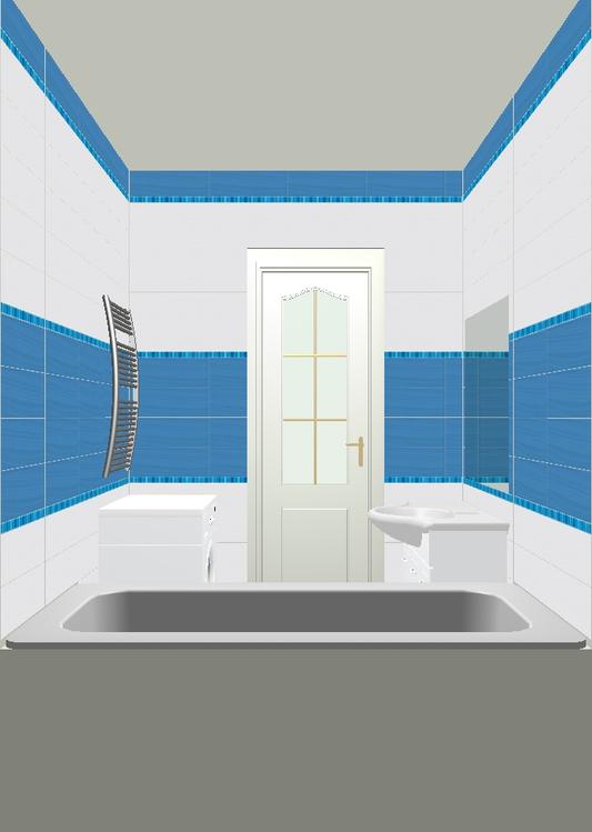 3) делать синее прям от края ванной, а не делать 2 белые плитки. Но тогда видимо надо убирать нижний бордюр