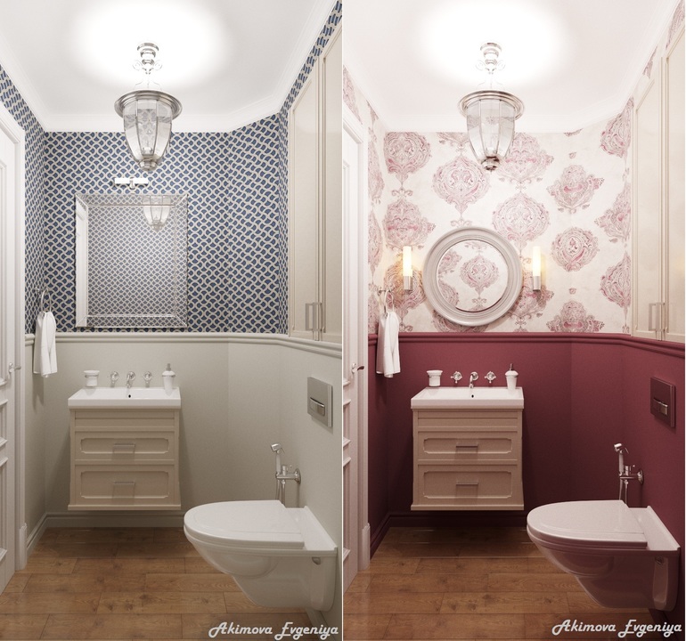 Я за комбинирование плитки с краской. А обои в туалет можно, если он отдельный)