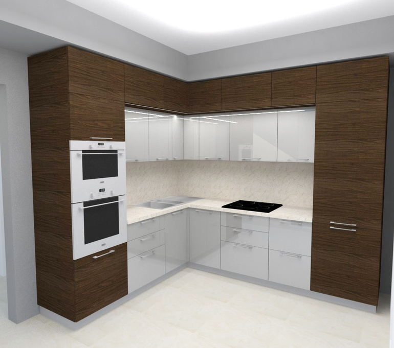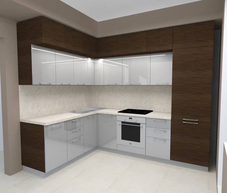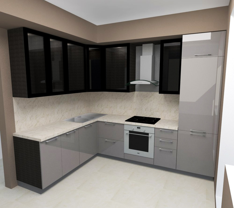 Мне самой нравится черно-серый. Однако, боюсь этих фасадов по двум причинам: как будут отмываться и насколько сильно они просвечиваются (фасады ИКЕА). Не будет ли темной кухня и верхние черные ящики не будут ли "давить"? Какой фартук, столешницу и пол лучше выбрать под этот вариант?