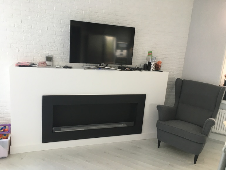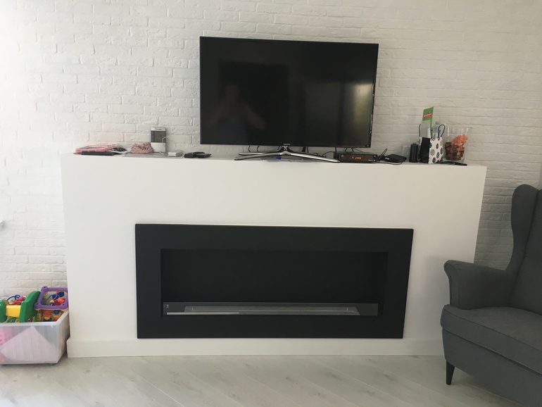 Это биокамин. Для него ничего не нужно специально, просто устроили в нишу и все) фирму не помню точно. Забейте "биокамин" их там не очень много. Ниша обычная из гипсокартона