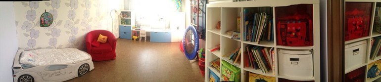 - кровать-машинку старшего сына сдвинуть по стене ближе к окну