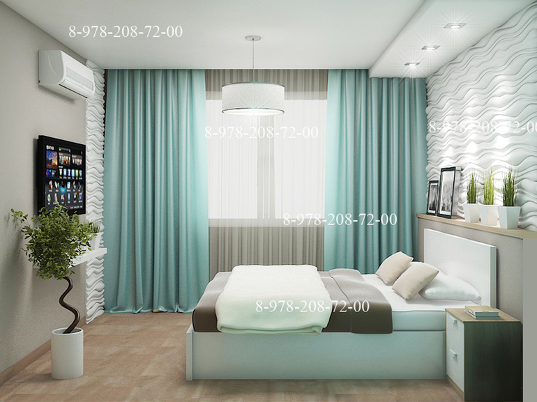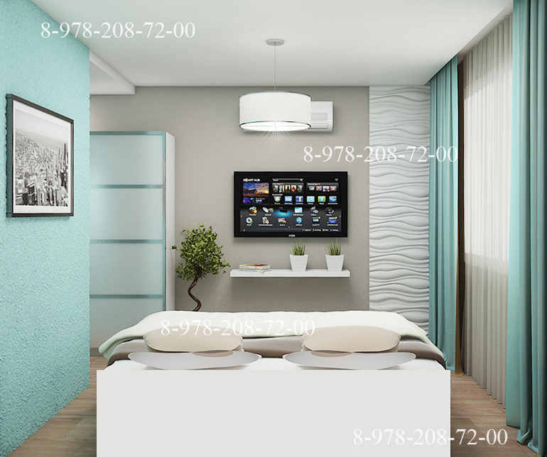 4. Цветовая гамма: Серо - бирюзовые цвета, комната должна быть светлой.