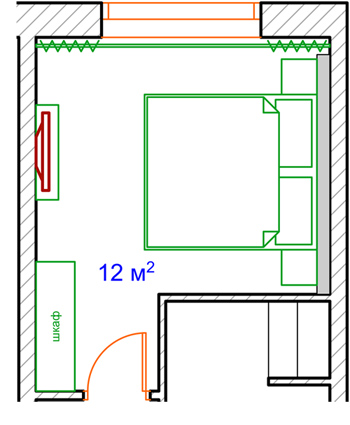 Дизайн проект интерьера _ Спальня 12 кв.м.