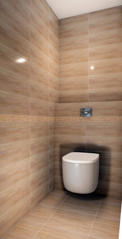 Раскладка у вас конечно скучноватая. Я тоже в ванную и туалет выбрала данную плитку только основной цвет из светлой плитки, а декор из темной коллекции. Вот как планируется) Плитка очень красивая и совсем не дешево смотрится.