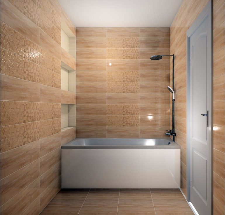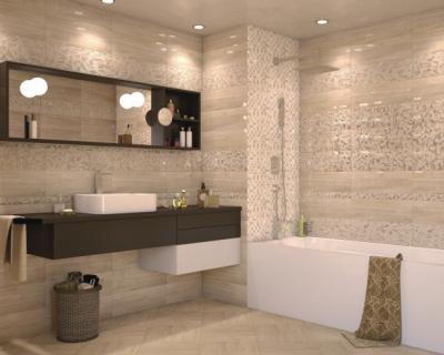 посмотрите Уралкерамику, у них очень красивые декоры, выбирайте на свой вкус, главное - не делайте в один тон просто бежевый, все сливается и пропадает вообще красота. можно выбрать так декор, чтобы в нем был акцентный цвет и к нему подобрать аксессуары (полотенца, стаканчики). плюс поэкспериментируйте с раскладкой (на многих сайтах есть раскладка онлайн), она должна украшать вашу ванную комнату