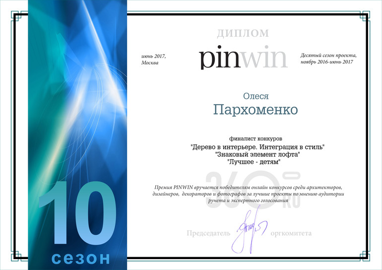 И приятно, когда твою работу в конкурсе: "Дерево в интерьере. Интеграция в стиль" отмечают коллеги-профессионалы: