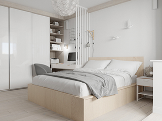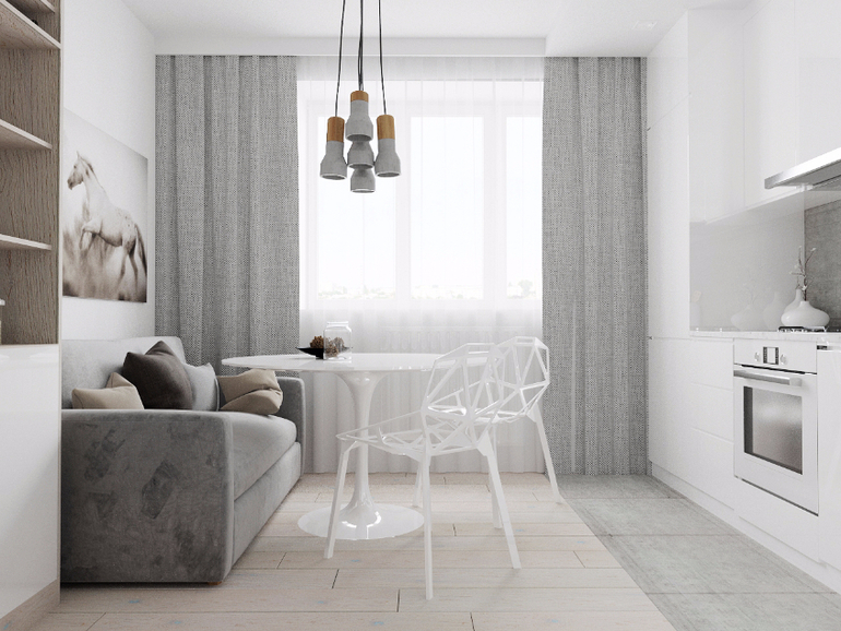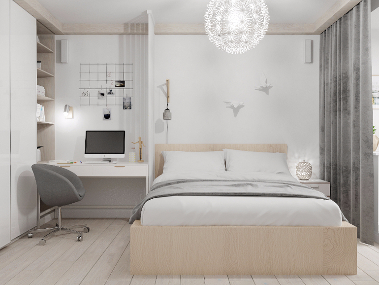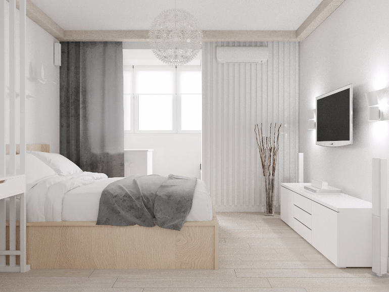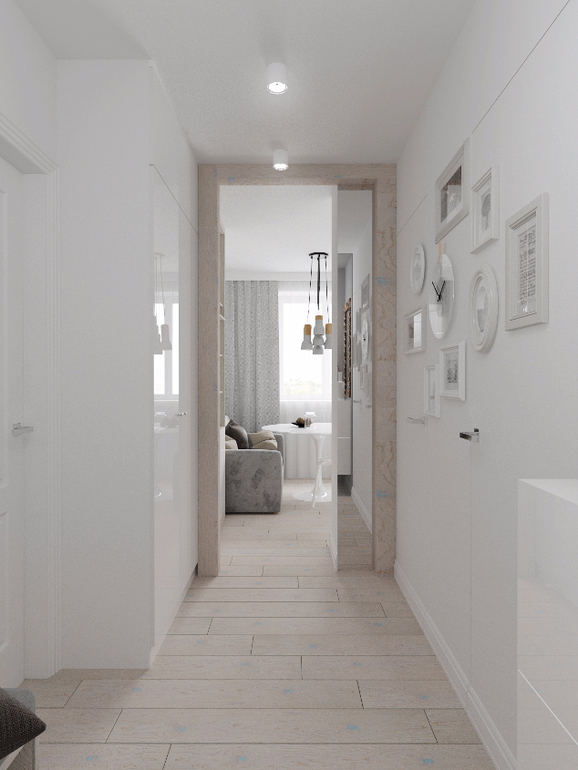 Проект однокомнатной квартиры площадью 35 кв.м на 24 этаже для молодых геймдизайнеров. Ребята работают дома, поэтому для них важно было создать уютную обстановку, продуманное пространство до мелочей с использованием натуральных материалов. Квартира сделана в стиле эко-минимализм. Фоном для деревянных акцентов служит белый цвет и нейтральный серый.