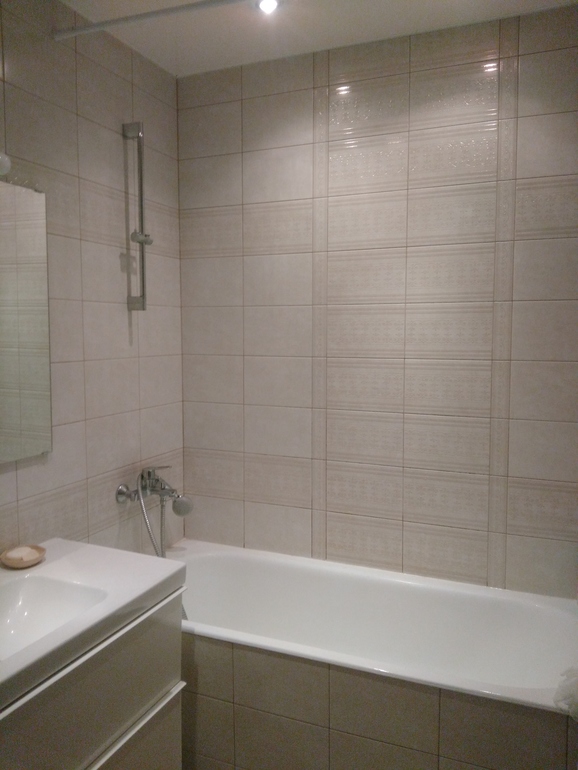 Девочки, покажите свою ванну у кого такая плитка. Не слишком скучно будет? Рассматриваю белый цвет.