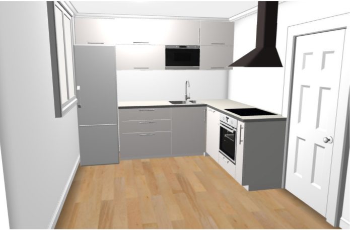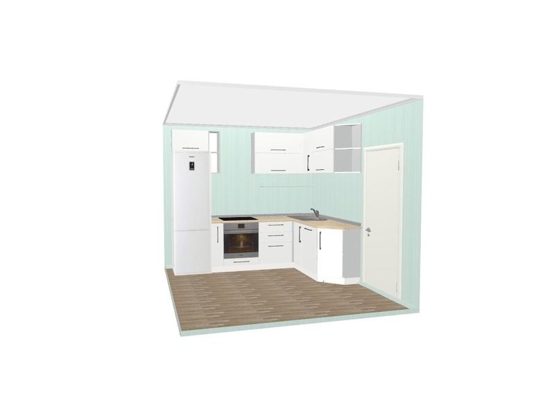 Итак имеем угол 273×189см, очень хочется столбик с духовкой, обязательно ПММ на 60см. Слева у нас выход на балкон, рисовала в программе Икея, угол со шкафчиками кое где коряво, не обращайте внимание)