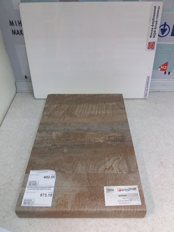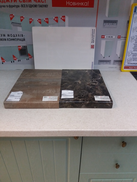 Белый очень красиво смотрится с деревом, но наш будет в алюминиевой рамке... это вроде по стилю модерн, а столешница "винтаж" Вот и переживаю на счет того как они вместе будут смотреться. Эта рамка была скорее вынужденным решением. Вживую не видела такие кухни.