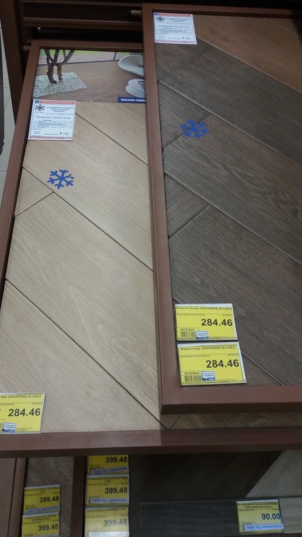 выбрали вот эту под состаренное дерево. Хорошо сочетается с полом... но не такая яркая как та темная... и будет ли она уместно смотреться с белым глянцем в алюминиевой рамке...