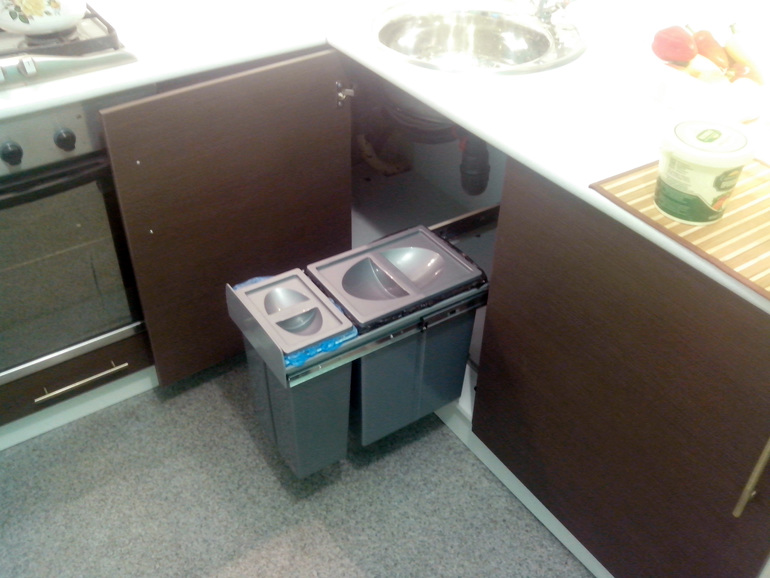 У нас всегда мусорное ведро стояло под раковиной, пока я не поняла, что мне это не удобно. И ведро плавно перекочевала просто на пол, сбоку от гарнитура.