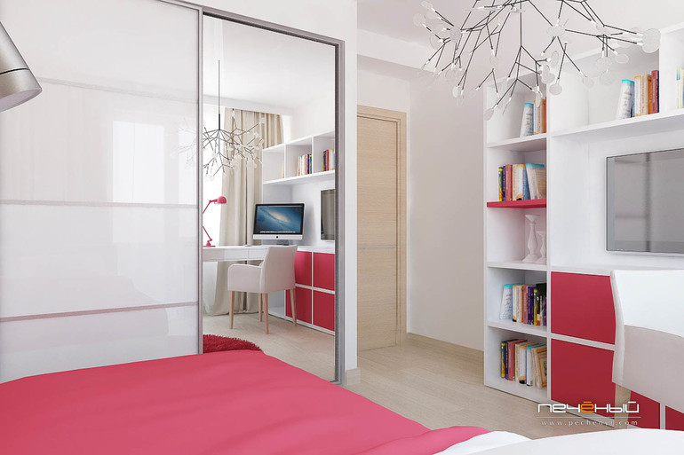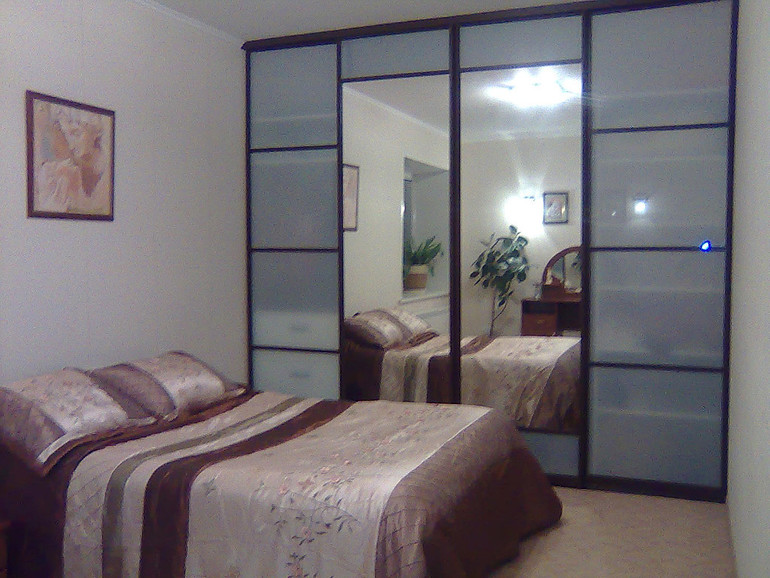 в спальне нужно иметь зеркало большое, так как одеваешься в ней, и если нет отдельного, то хотя бы одна дверь должна быть зеркальной, а если все двери -то это пространство расширяет, да- может конечно очень просто двери с зеркалом, но нужна ж не только красота, но и удобство