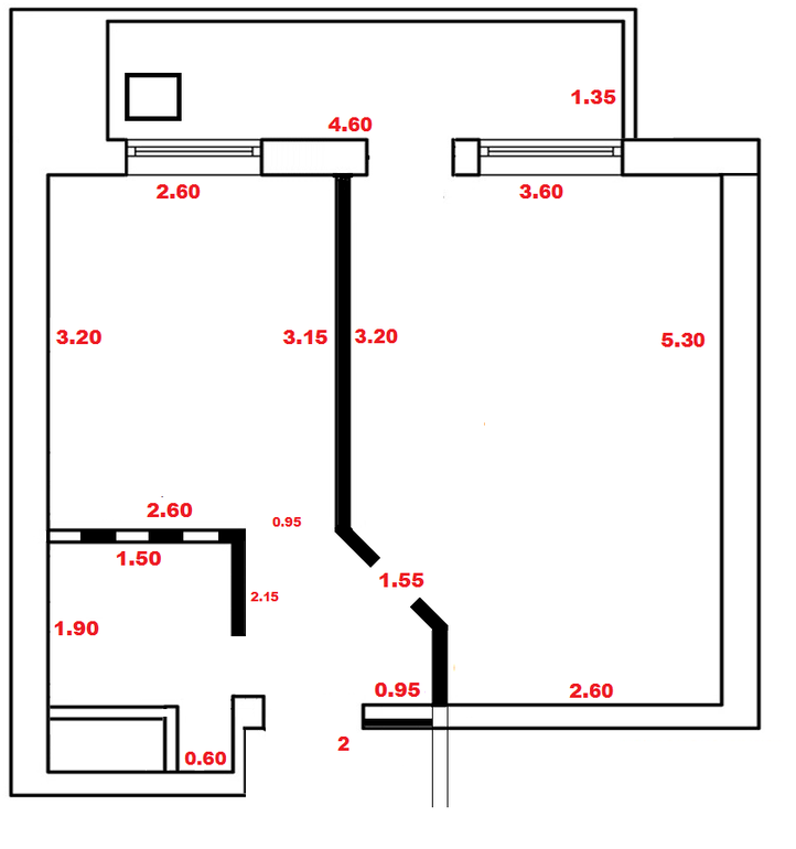 чей-та? у нас стандартная шестидесятка, если бы автор дала размеры, можно было бы точно сказать, нашей комнаты хватило, сделать нишу шириной 2000 мм, в прихожей шкаф 600, дверной проем 1000 мм и еще каллакс стоит 400 мм, ну и наличники влезли.