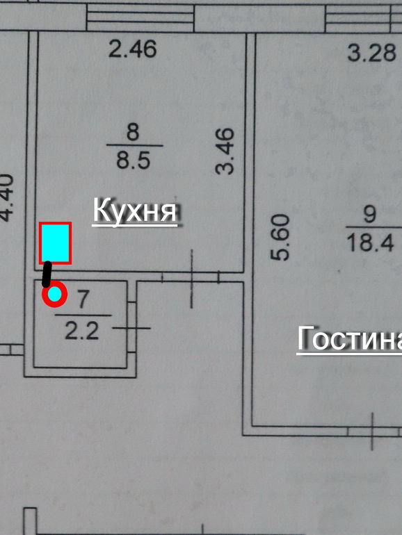 Вариант 1. Присоединить кладовку к кухне