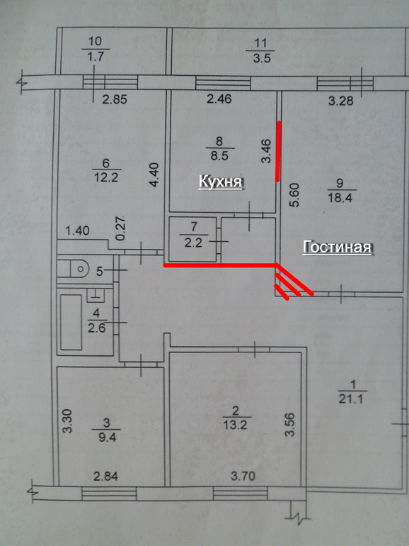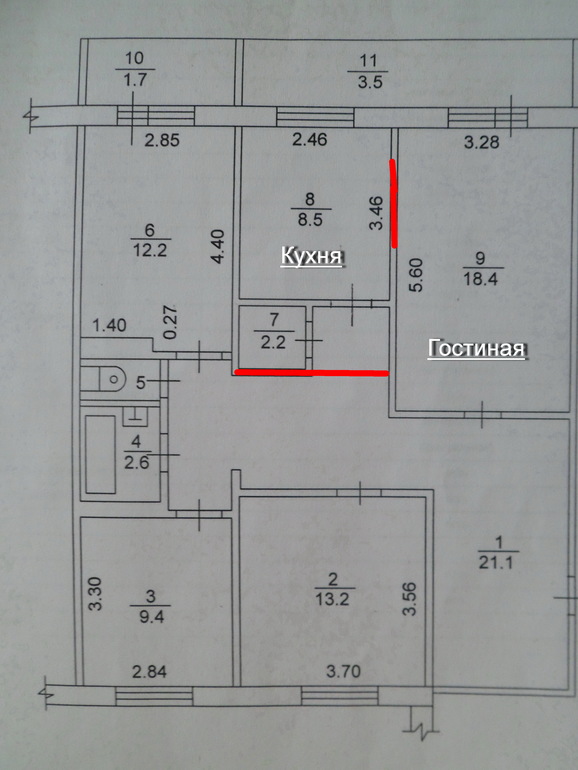 Перепланировки стен. Согласование перепланировки квартир и нежилых помещений.Планируем ремонт и не знаем, как подступиться ) потому что с мужем начались небольшие разногласия. Я хочу как-то увеличить кухонное пространство. Дело даже в не в площади (сейчас 8,8 кв.м), а в том, что меня ужасно раздражает вход в кухню через узкий коридорчик, так как перед кухней находится кладовка.