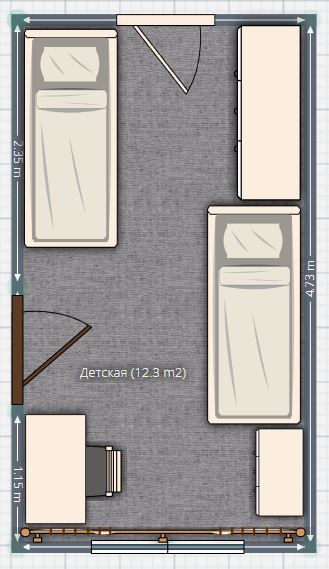 Спасибо! ТОже склоняюсь к этому варианту, помимо кроватей умещаются даже 2 письменных стола. Но боюсь ошибиться. Если 2 кровати+2 небольших письменных стола, получится заставленным весь периметр комнаты, кроме окна :)