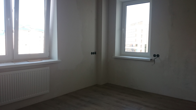 Имеется трешка, въехали в минимальный ремонт, стены зашпаклеваны(обои со временем) , потолки будут натяжные, плитка положена ванна, туалет, кухню установили, а все остальное будем делать постепенно...