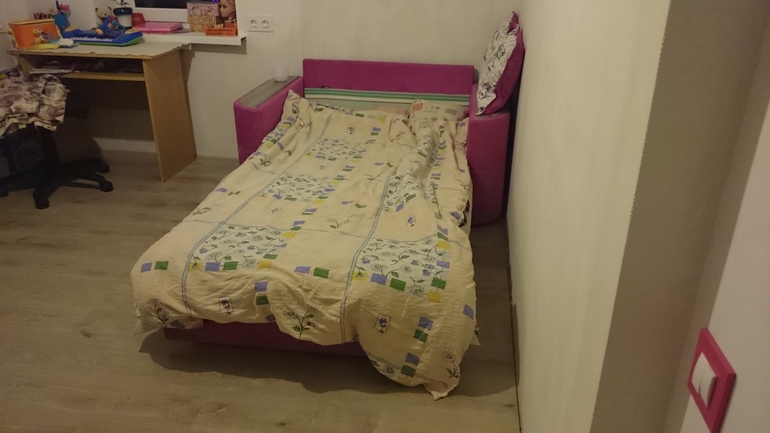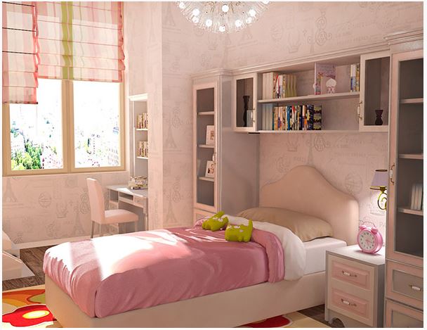 Имеется отдельная комната 12 метров, в которой 2 окна и диванчик который останется.Ребенок мечтает о розовой комнате, но думаю добавить просто элементы, мебель хочется белую(шкаф, стол и место для хранения книг и игрушек)