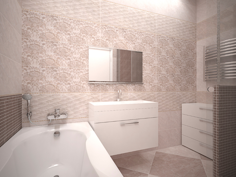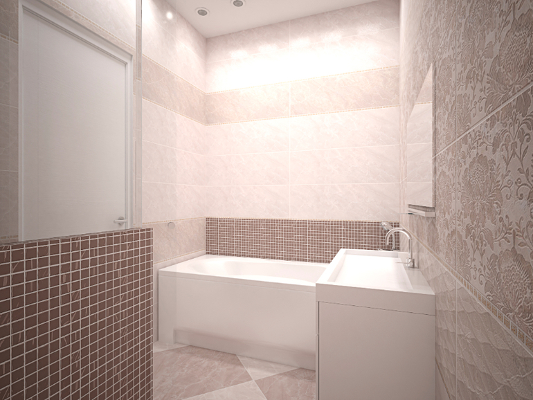 Еще я придерживаюсь мнения, что помещения которые не сможете ремонтировать каждые пять лет (такие как ванная например, ибо дорого и муторно каждый раз менять плитку) нужно делать в спокойных тонах (у Вас кстати как раз такие) и без броских узоров.