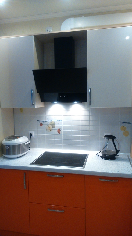 С этого ракурса показалось, что короб вытяжки(тот, что металлический) идёт не по центру, а немного левее) мне просто как раз так нужно