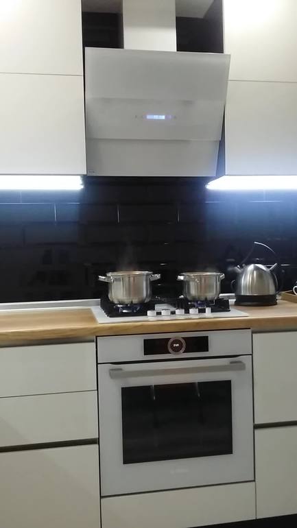 Интерьерное решение кухниДевушки, у кого стеклянеые наклонные вытяжки на кухне? Поделитесь как они в эксплуатации? Если можно покажите фото. Планирую белое стекло 90см. Но чтоб открывающаяся часть большая и на "лифтах".