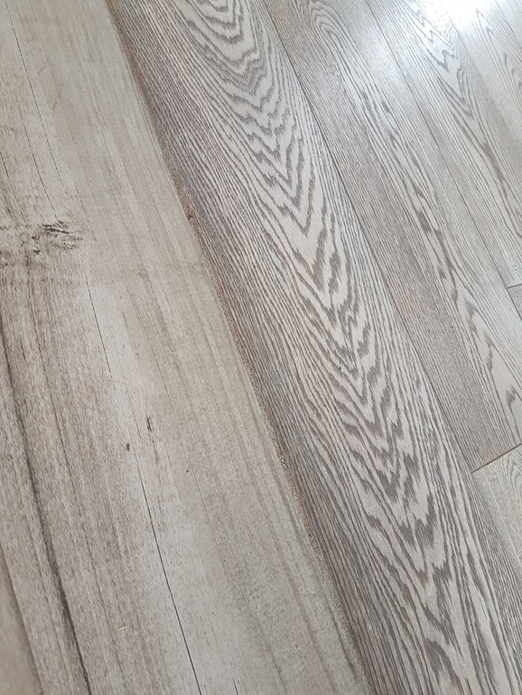 Стык нашей массивной доски и плитки: