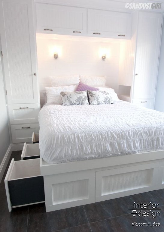 Валентина, конструкция хорошая, вместительная, комната будет выглядеть чище. Ящики над головой не смущают, опасности не вижу, т.к. Они будут хорошо закреплены. Чтобы что-то взять/положить - ну и что, встанете на кровать и положите, просто, думаю те полки будут реже использоваться. Под кроватью можно либо такие ящики оставить, либо сделать подъемный механизм, тут на любителя. Все хорошо.