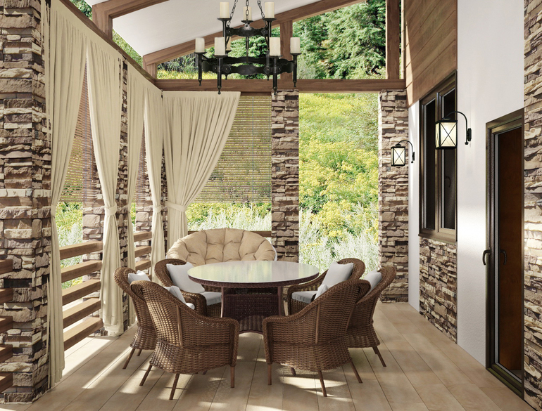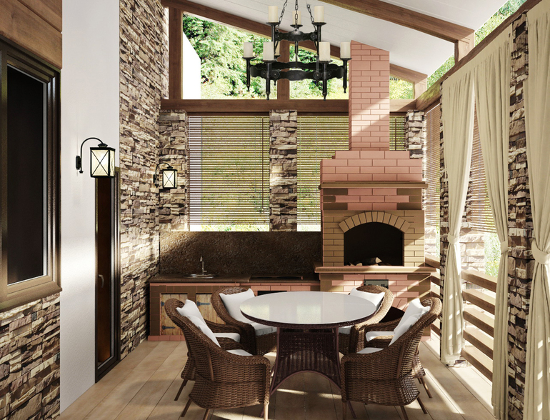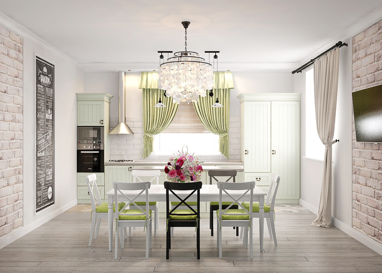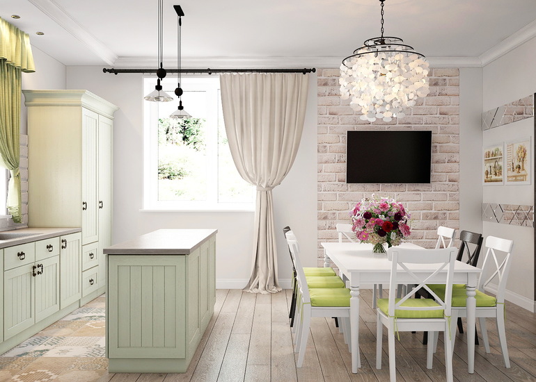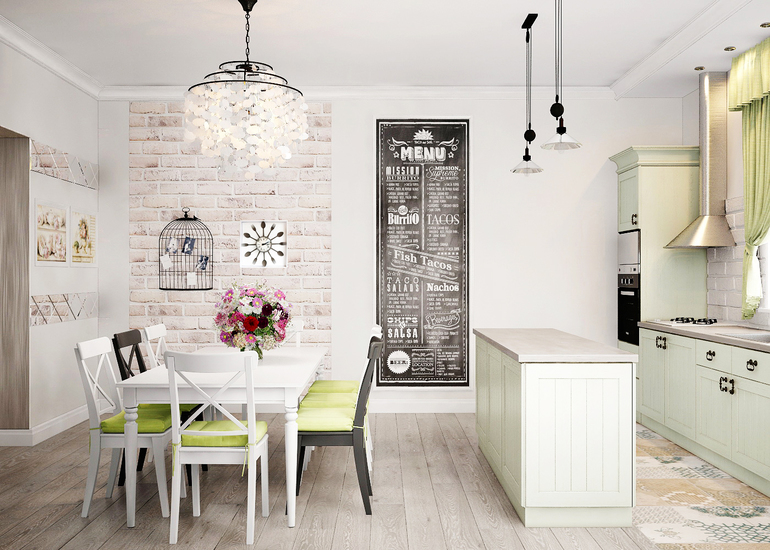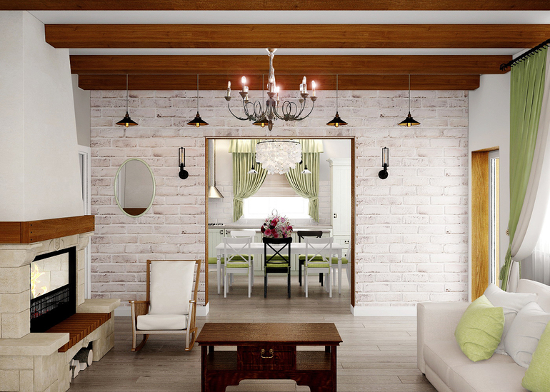 По стилю, это что-то среднее между кантри, шале и провансом. Есть элементы лофта.