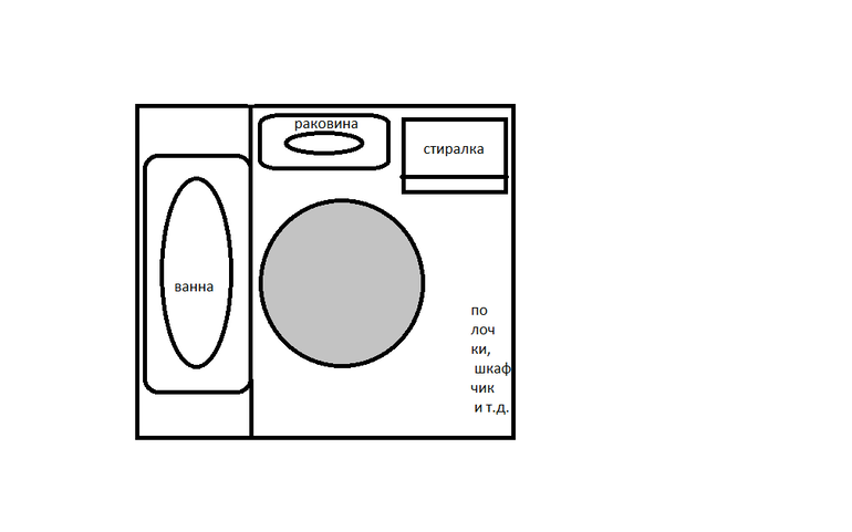 Посмотрите мою ванну в дневнике, мы разместили все на еще меньшей площади. Еще посмотрите раковины ravak avocado, как раз по Вашей правой стене встанет вместе со стиралкой. Тогда ванна по левой стене.