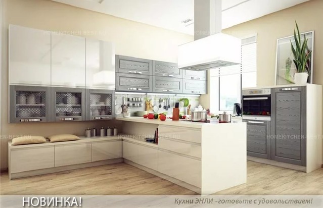 Я когда увидела это сочетание в живую, поняла что это именно ОНО!!! Сразу же заказали, хотя до этого не могли долго определиться вроде как классику хотелось, но чтоб без вензелей и патины, и при этом современную, рассматривали массив или эмаль. В итоге мы заказали кухню фабрики ЭНЛИ (у нас в городе было открытие их салона и все экспозиции новые можно вживую посмотреть) "Тоскана Гриджио" (можете посмотреть у них на сайте полно вариантов такого сочетания), у нас будет верх из массива ясеня темно-серого цвета, а низ белый глянец в подвесном буфете сочетается и глянец и массив