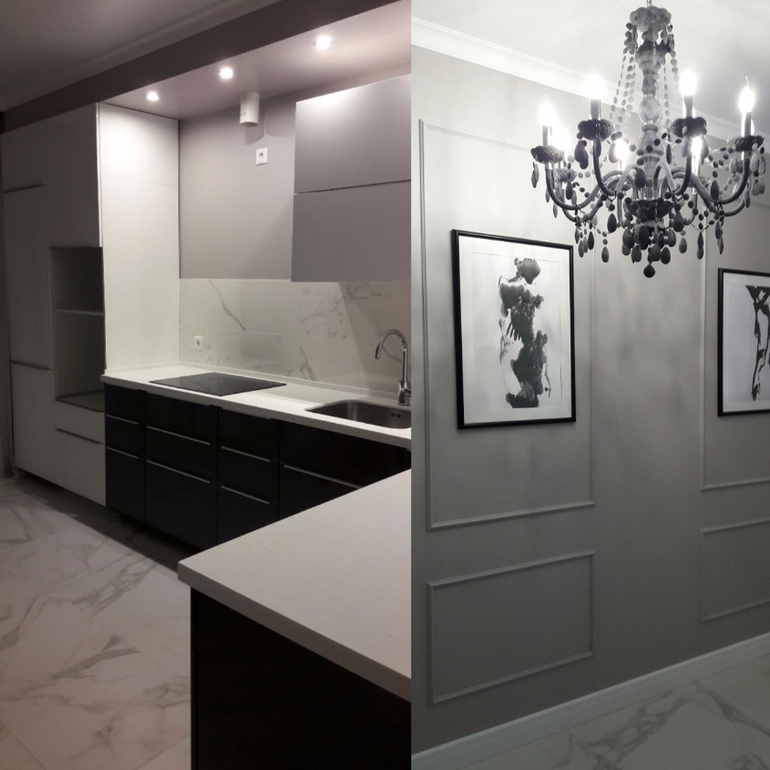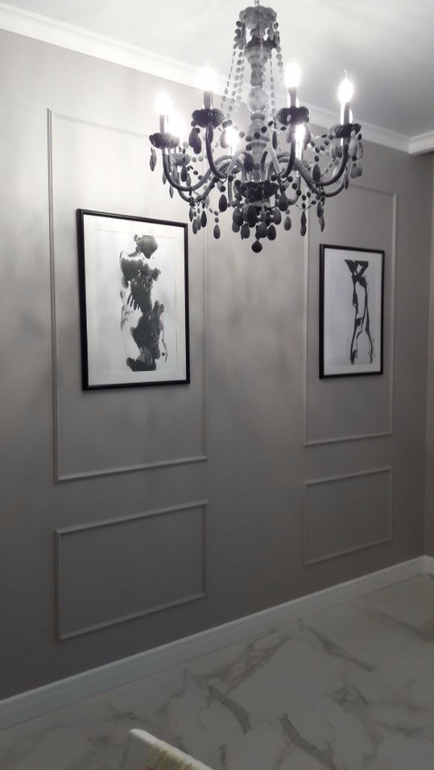 Очень красиво, лаконично. Люстра придает комнате парадный вид. Мне не хватило цвета, но так и не мне там жить :-)