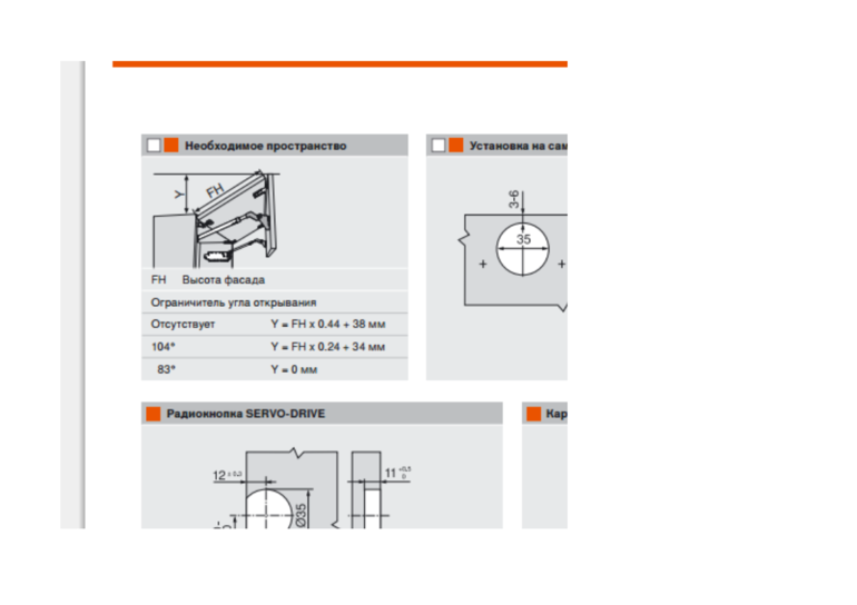 Высота фасада - обычно грубо если посчитать,то корпус раздел.на 2. Асимметричные редко делают. Т.е. можно прикинуть,что при ограничителе 83 гр,фасады не будут вообще выходить за корпус к потолку,но будут делать доступ менее удобным
