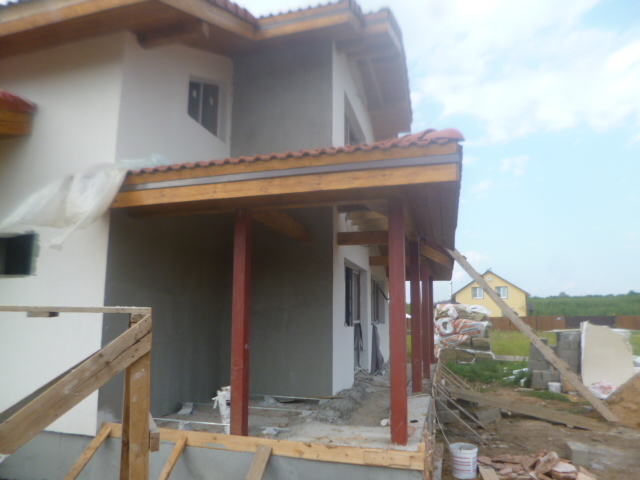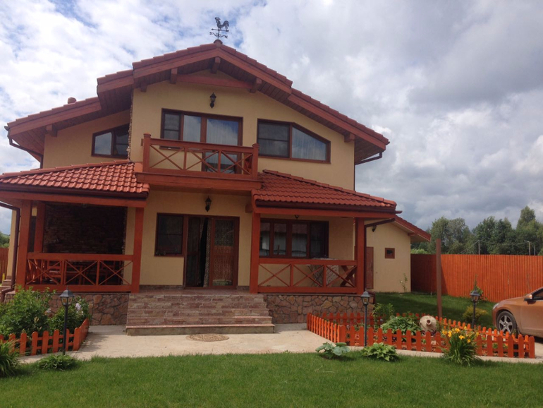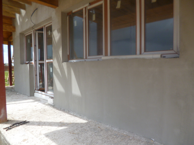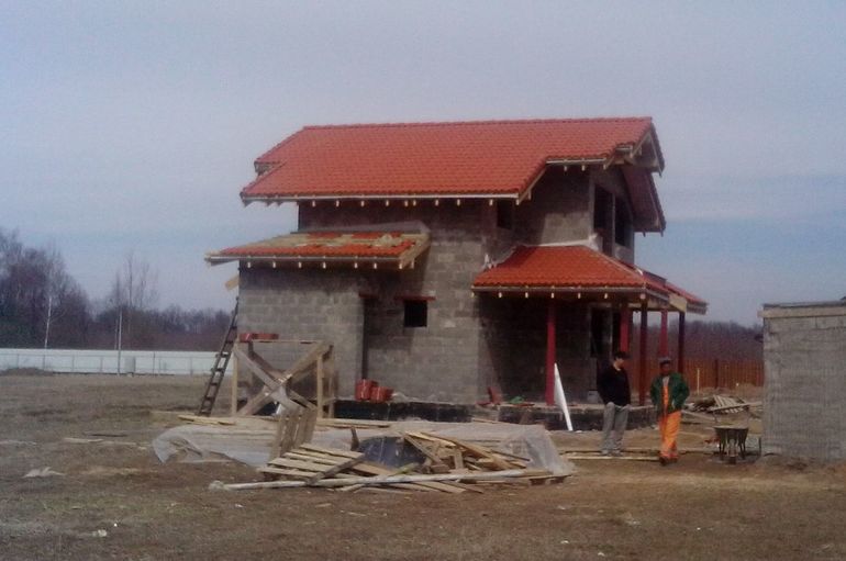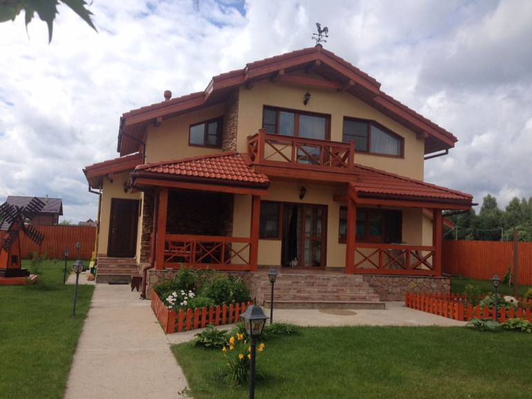 Дом построен из блоков и утеплен. Кровля - натуральная черепица. Внешняя отделка стен - гибкая штукатурка церизит и натуральный камень. Ламинированные окна. Пропитка - пинотекс.